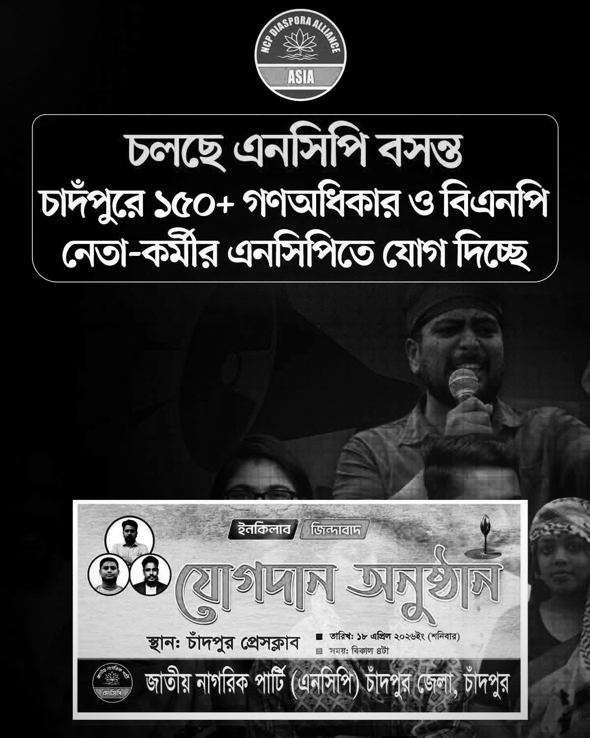 বিএনপি ছেড়ে এনসিপিতে ১৫০ নেতাকর্মী, চাঁদপুরে নতুন সমীকরণ